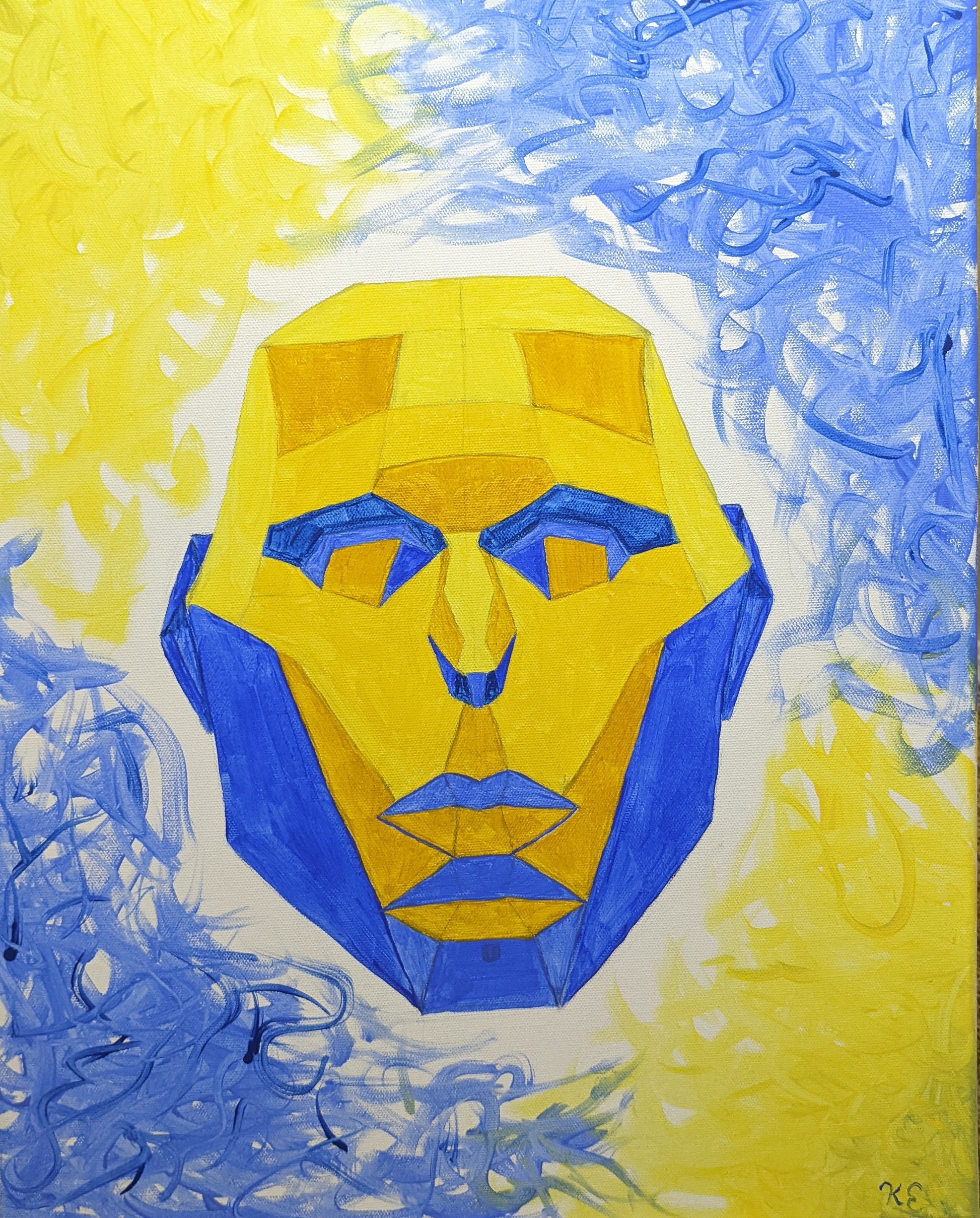 ***Sale***This piece features yellows and blues in a way that brings out the beauty in this 'perfect' face. Its dimensions are 16 inches by 20 inches.